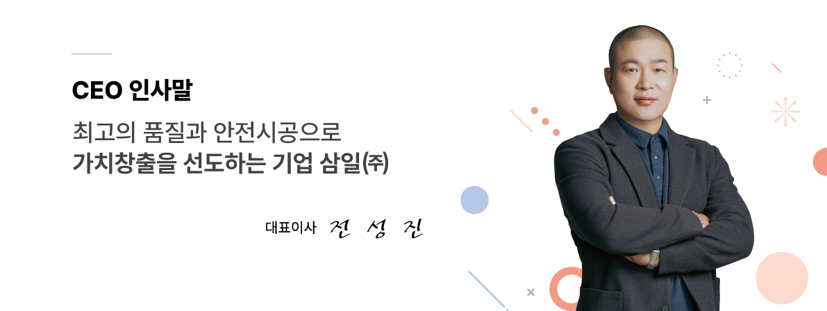 삼일㈜는 2009년 창립 이래 지속적인 변화와 혁신을 추구하고 있으며,토목· 건축공사, 전기공사, 기계공사의 풍부한 경험 및 최고의 기술력과 안전시공으로 고객에게 최고의 품질을 제공하는 기업으로서의 입지를 구축하여 왔습니다.